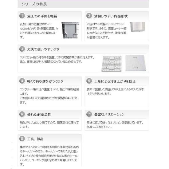 プラスチック製角型雨水溜めマスの「集水マス」です。