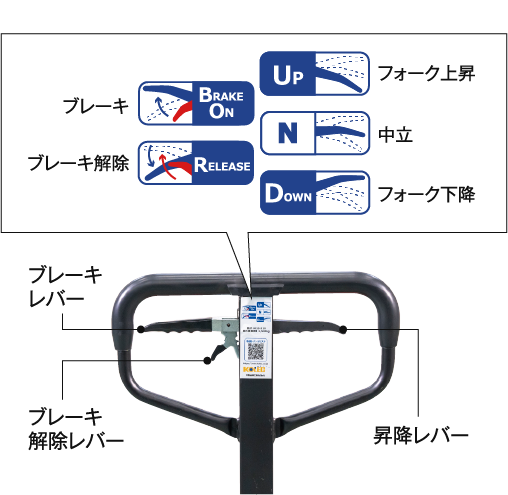 NEシリーズのハンドリフトは新開発タイヤを採用し、始動抵抗や走行抵抗を大幅に低減。そのため、操作がスムーズで効率的な作業が行えます。また、足踏みペダルも標準装備されており、疲労を軽減しながら作業をスムーズに進めることができます。