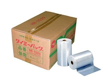 タイミーパックは、食品関係の包装資材の主流をなすSサイズのポリ袋から、食品及びゴミ用のLサイズのポリ袋まで、サイズ豊富なリール巻ポリ袋です。